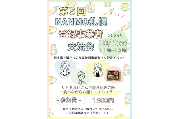 10月2日(木) 11時〜13時 白石区本郷通り11丁目南1-14 炊き込みご飯カフェ りとるれいさんで開催します 参加費は 日替わり炊き込み定食とお飲み物☕️とアイス🍨 1500円です ランチしながら、 皆さんのされて […]
