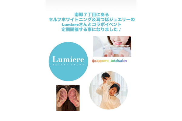 ![]() 南郷7丁目駅からすぐのLumiere (ルミエール)さんにてコラボイベント開催決定!日頃からお仕事や子育てを頑張っている皆さまに「ほっと一息つける時間」を過ごしてもらえたら糸と思っております。タイ式マッサージ30分十耳つ […]