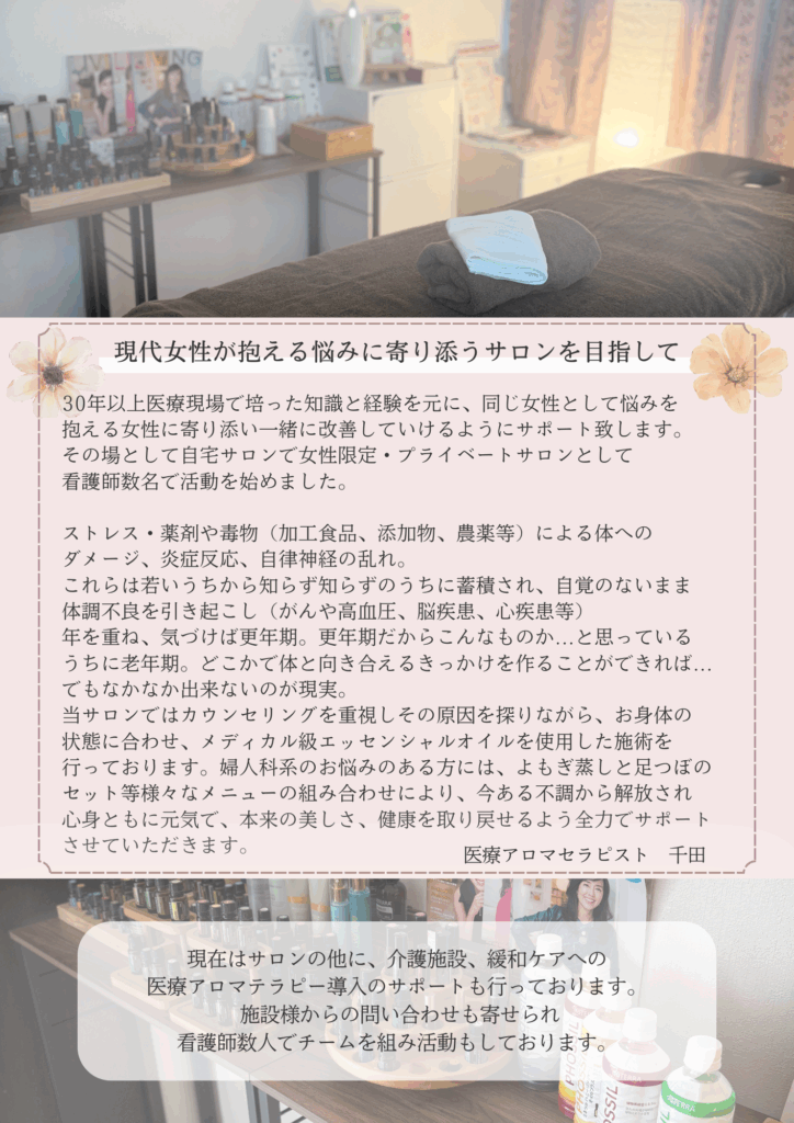 婦人科ケア(よもぎ蒸し・足ツボ)尿失禁ケアなどを通して、