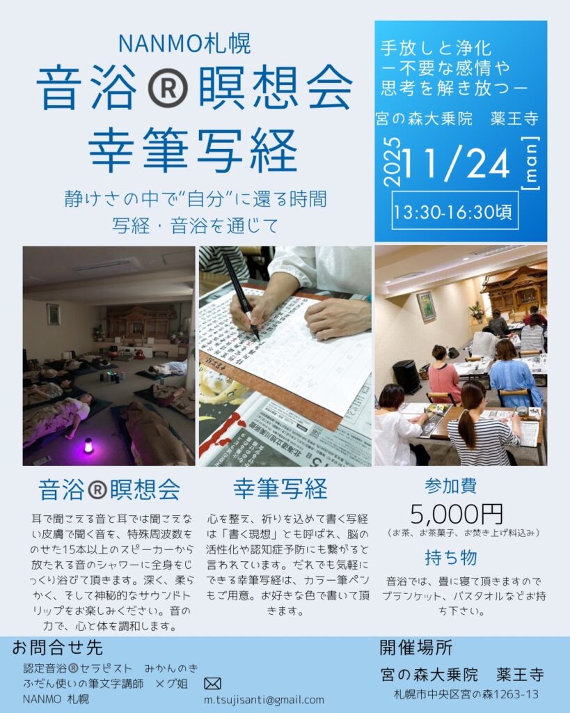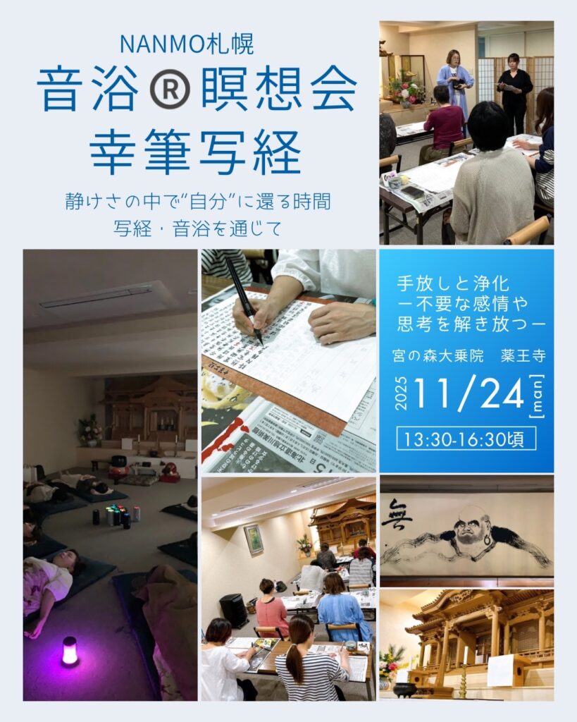 音浴®︎と写経を通じて、心と体を整えるひとときをご一緒しませんか?いらないものを手放し、浄化と調和のひとときを過ごしましょう。